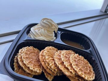 One of our delicious ice cream shakes with a chocolate drizzle and whipped cream!